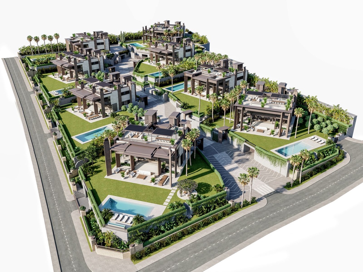 This development consists of eight contemporary villas in a gated community inside prestigious urbanization. All houses have more than 1.000 m2 enclosed areas with a plot over 2.000 m2 and beautifully landscaped gardens. Our 8 villas have a lot in common, but each one is unique in its architecture and has distinctive features. Porches, terraces and patios, pools and chill out areas, vegetation in gardens vary - so you can choose a villa that suits you best. Clean modern exteriors, spacious bedrooms, huge terraces, a designer outdoor pool, a SPA zone with an indoor pool and customized intelligent home system - a new concept of luxury and an excellent choice for a second home in a great climate throughout the year. This exceptional urbanization with 24-hour security, a massive green zone, a walking area and magnificent views within walking distance of famous Puerto Banus offers personal comfort, security and life quality to its residents.