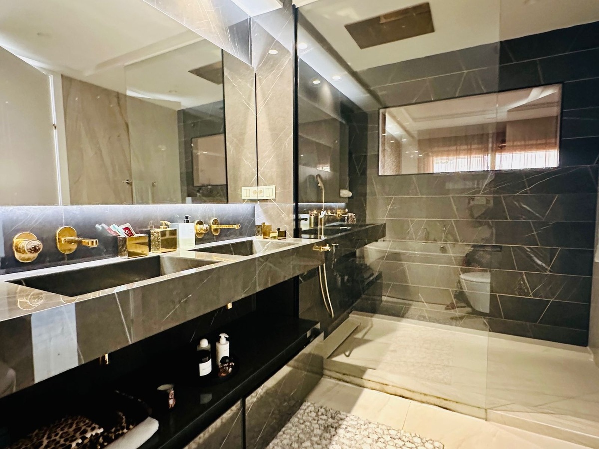 Comprising 6 spacious bedrooms and 6 modern bathrooms, the apartment has been meticulously designed to offer the utmost comfort and convenience. The property comes fully furnished and features a fully fitted open-plan kitchen, marble floors, air conditioning, double glazing and fitted wardrobes. The living and dining areas are generously proportioned, and the layout offers an easy flow, continuing to the covered terrace which offeres entertaining and dining year round, whilst enjoying the charming panoramic views down to the sea.