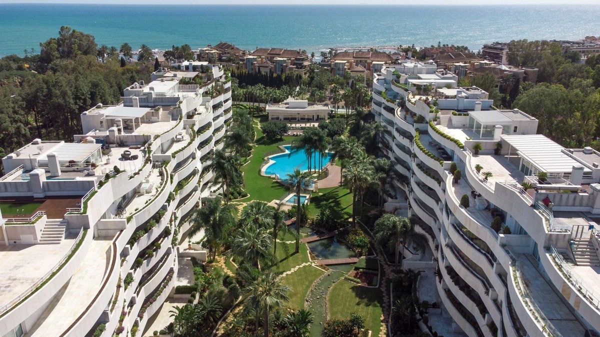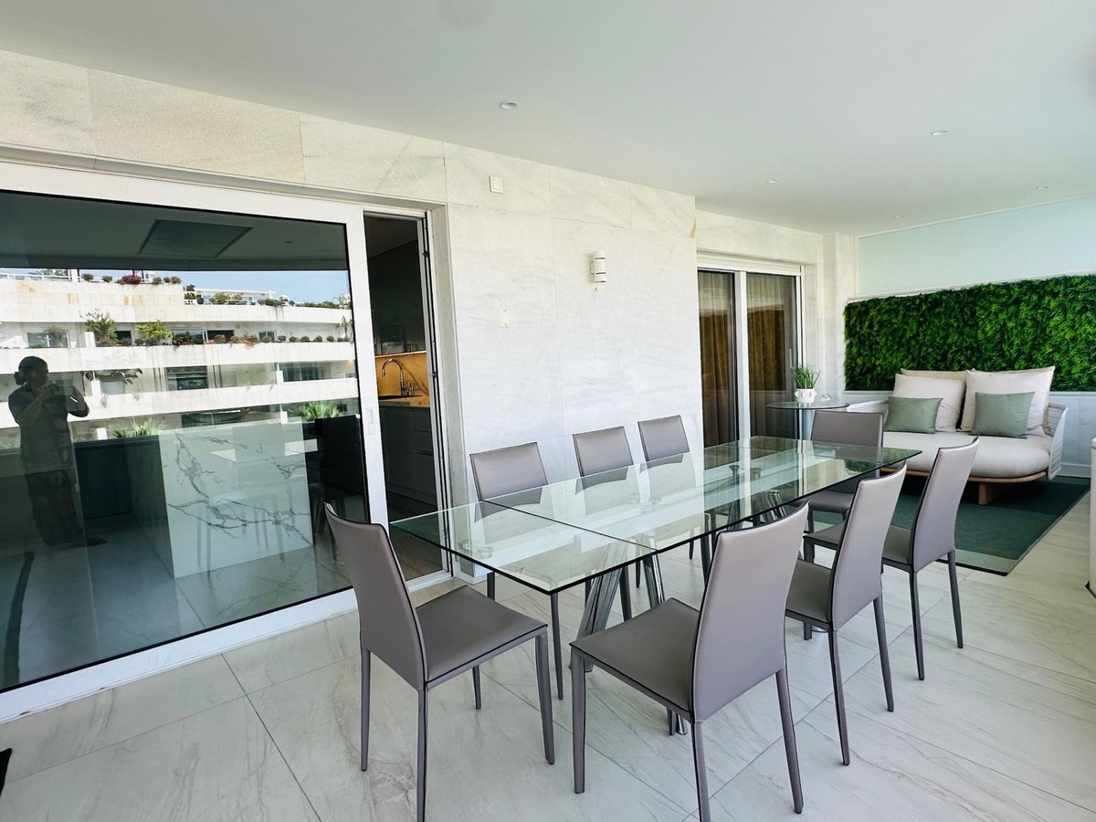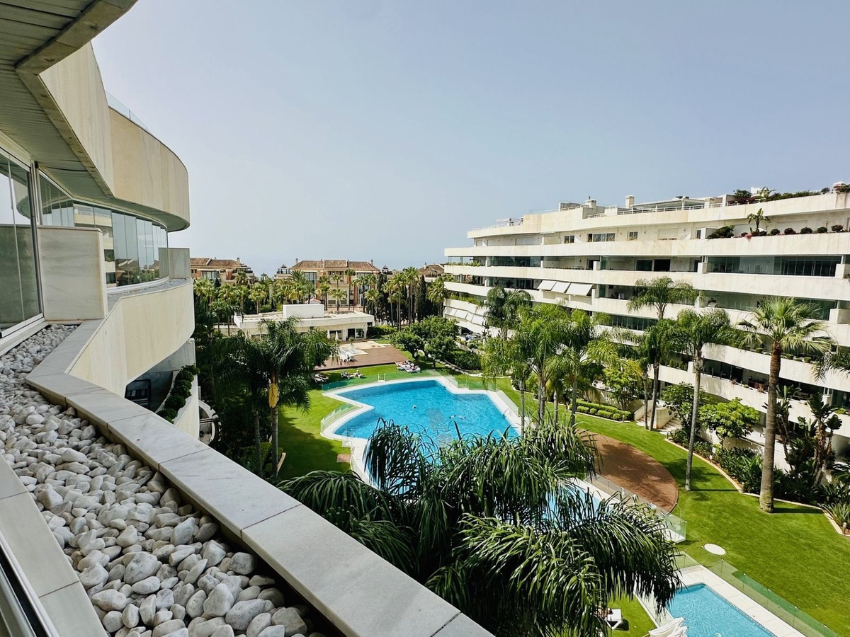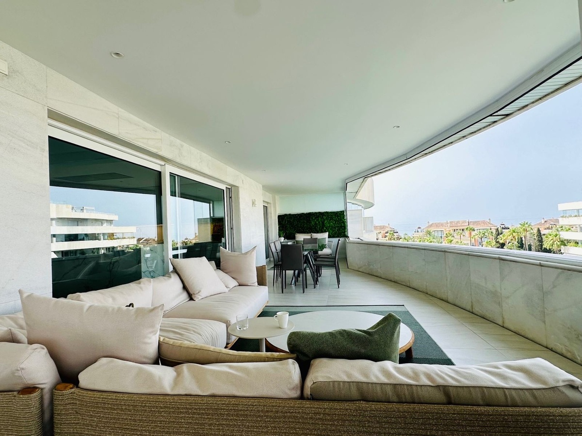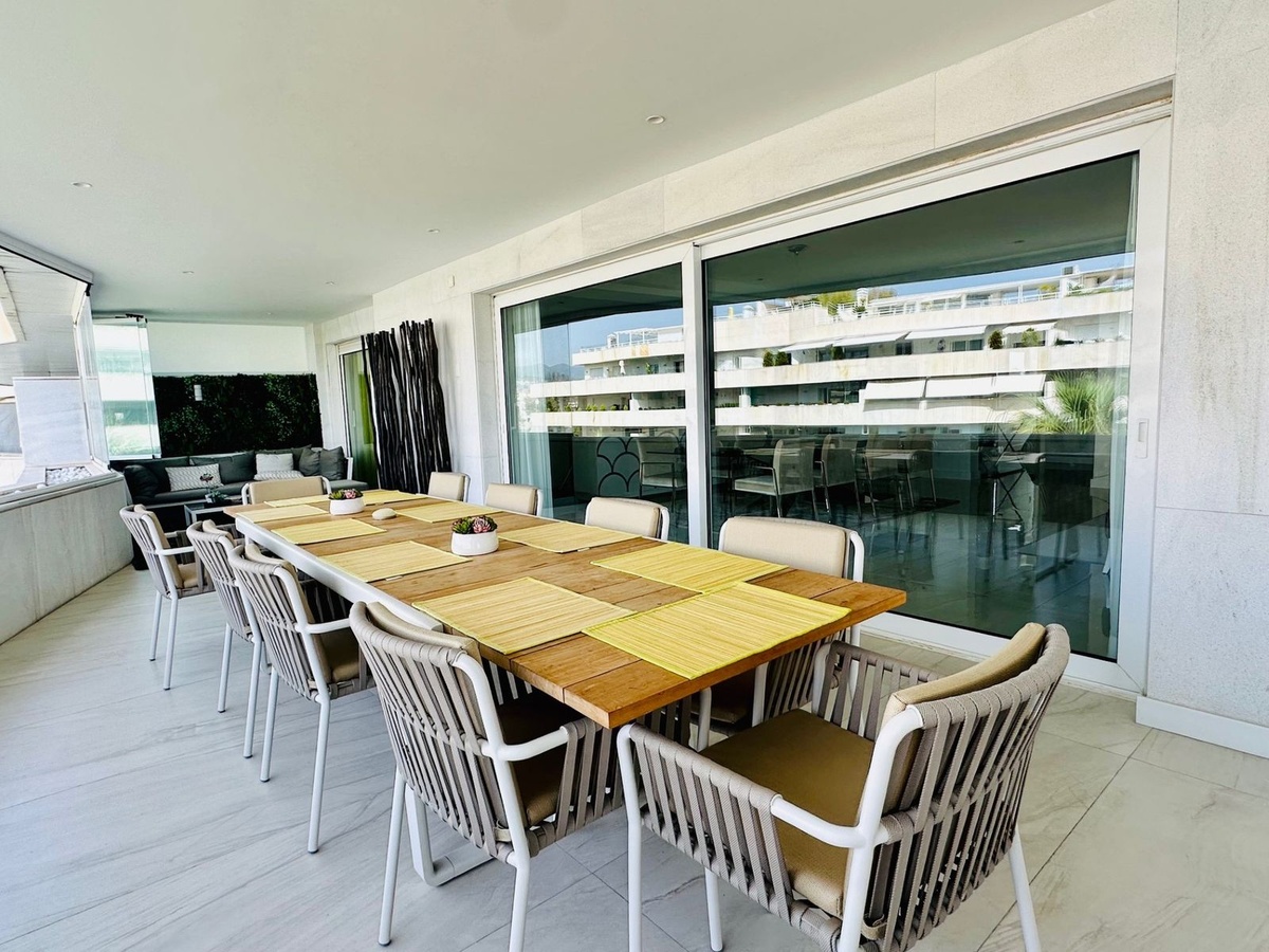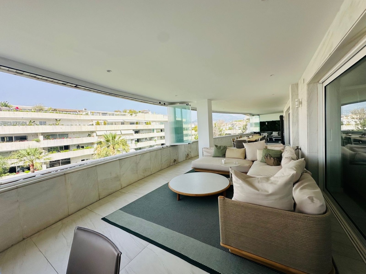 This exceptional luxury apartment is situated in the prestigious El Embrujo Banús development, just 750 metres from Puerto Banus in Marbella. Occupying a prime position on the 4th floor, this expansive property offers over 380m² of built space complemented by a stunning enclosed terrace of almost 90m², providing partial sea views and panoramic vistas. The apartment is ideally located within a gated community, ensuring both privacy and security, and is only a short stroll from the beach, promenade, and a wealth of local amenities, including shops, restaurants, schools, and golf courses.