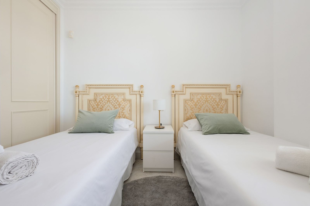 Los dos dormitorios están diseñados para tu confort. El principal, en suite, cuenta con una cama doble (180x200), armarios empotrados, acceso a la terraza y vistas a la montaña. El segundo dormitorio dispone de dos camas individuales (90x200) y vistas al mar. Ambos baños incluyen bañera, bidet, lavabo e inodoro.